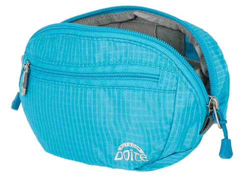 Banano básico de uso casual. Posee 2 bolsillos con divisiones interiores, y salida de audífonos.
